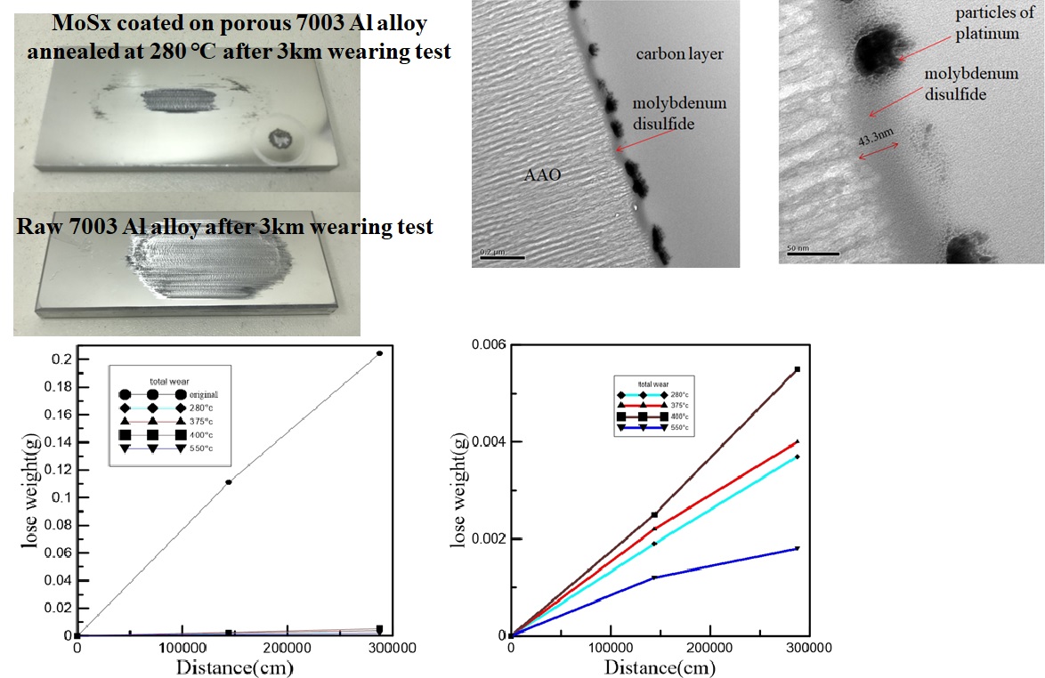 MoSx coated on porous Al alloy provides high resistance to wearing.