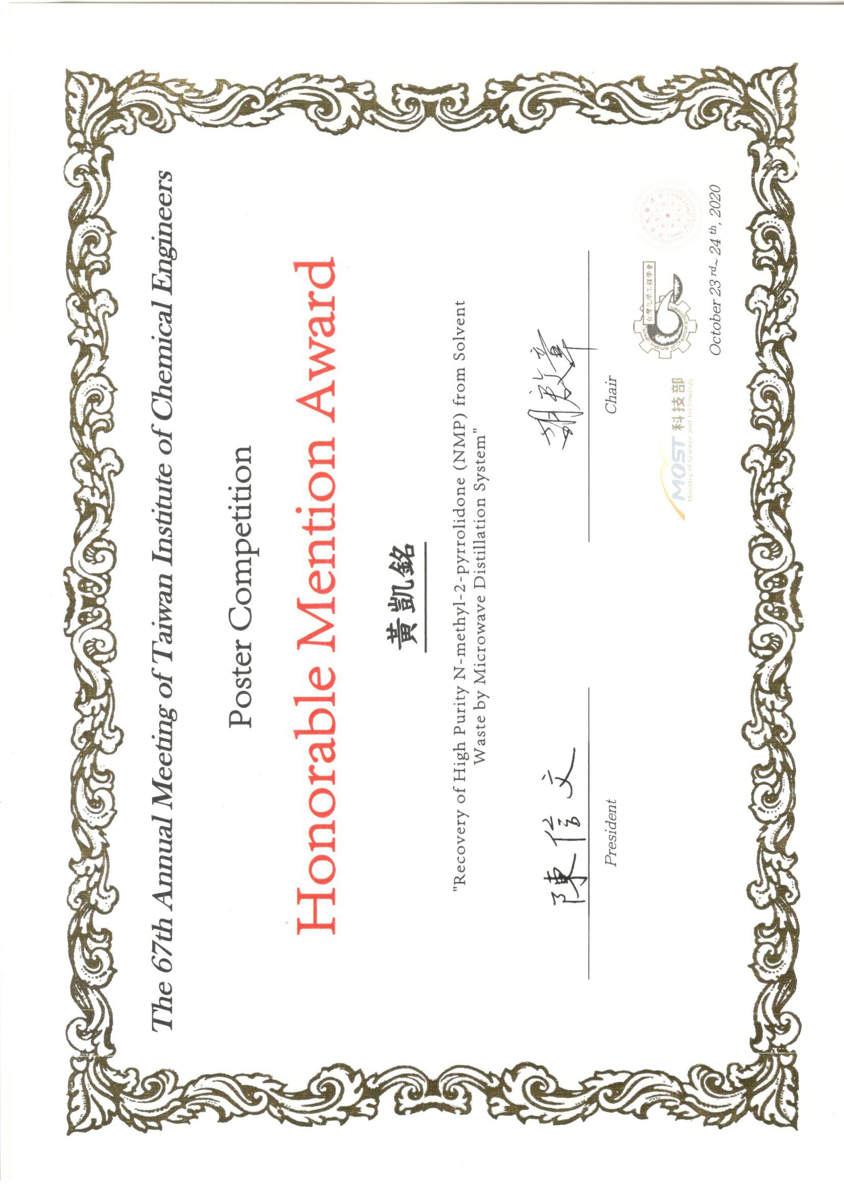 9. 2020 ISNST International Symposium on Novel and Sustainable Technology, Excellent Presentation Award (1)
