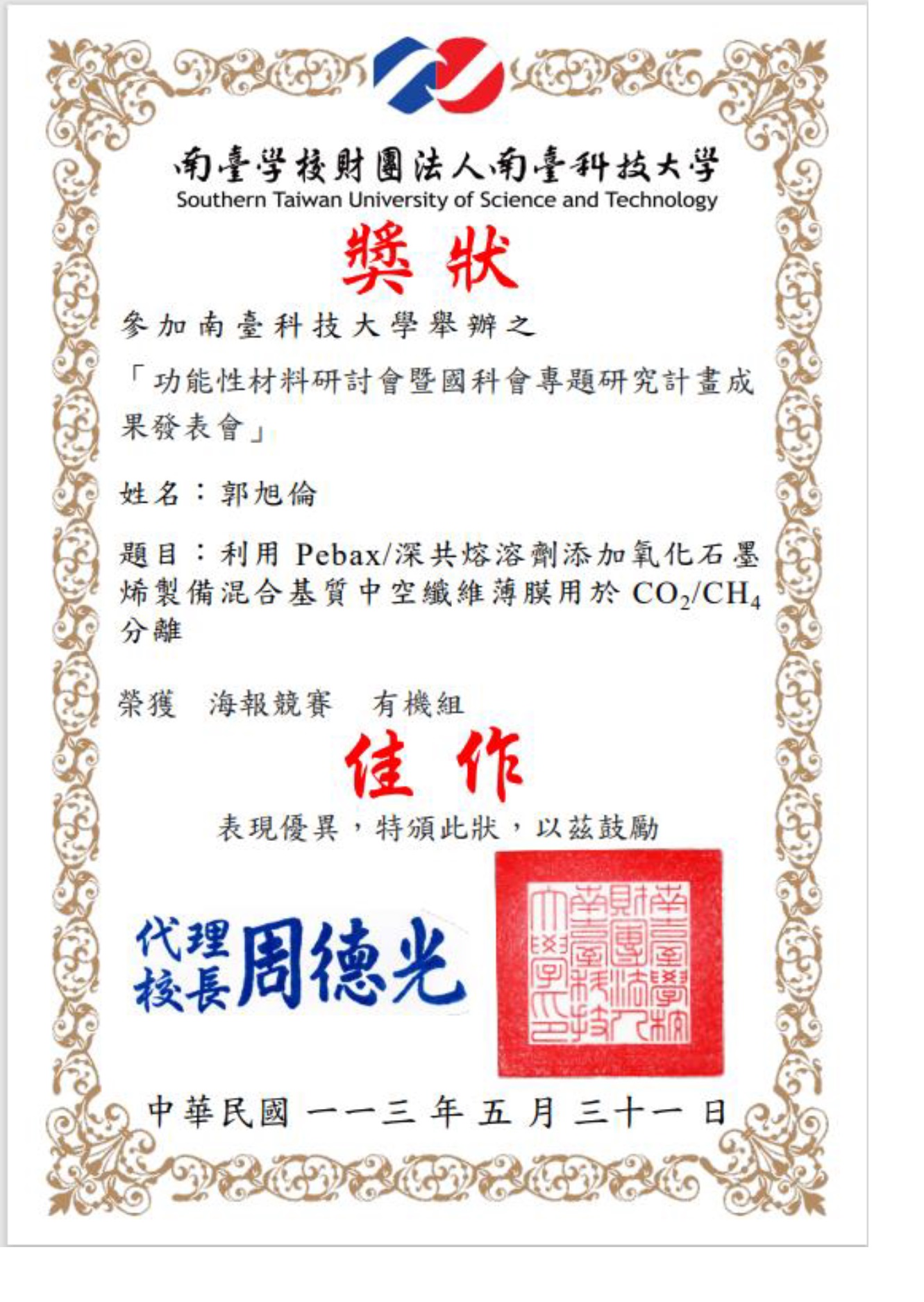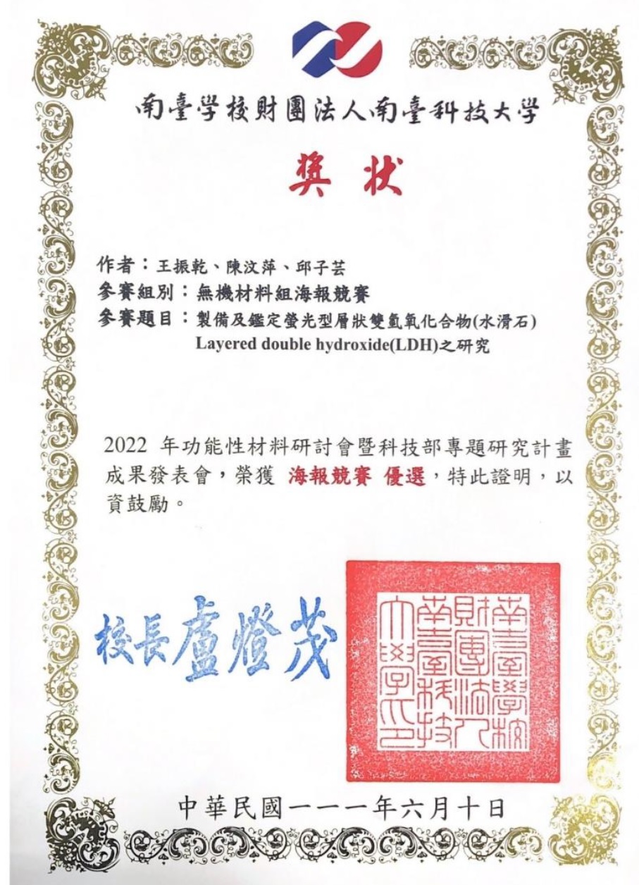 2. 2024年功能性材料研討會暨國科會專題研究計畫成果發表會與新工程教育專題論壇/海報競賽 有機組/佳作