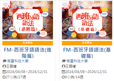 課程名稱:初級西班牙語一、初級西班牙語二、基礎西班牙語會話、初級進階西班牙語、進階西班牙語、德語圖解發音動畫學習