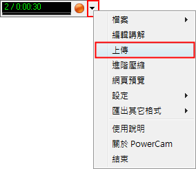 2. 在上方工具列執行 [PowerCam 5/上傳]