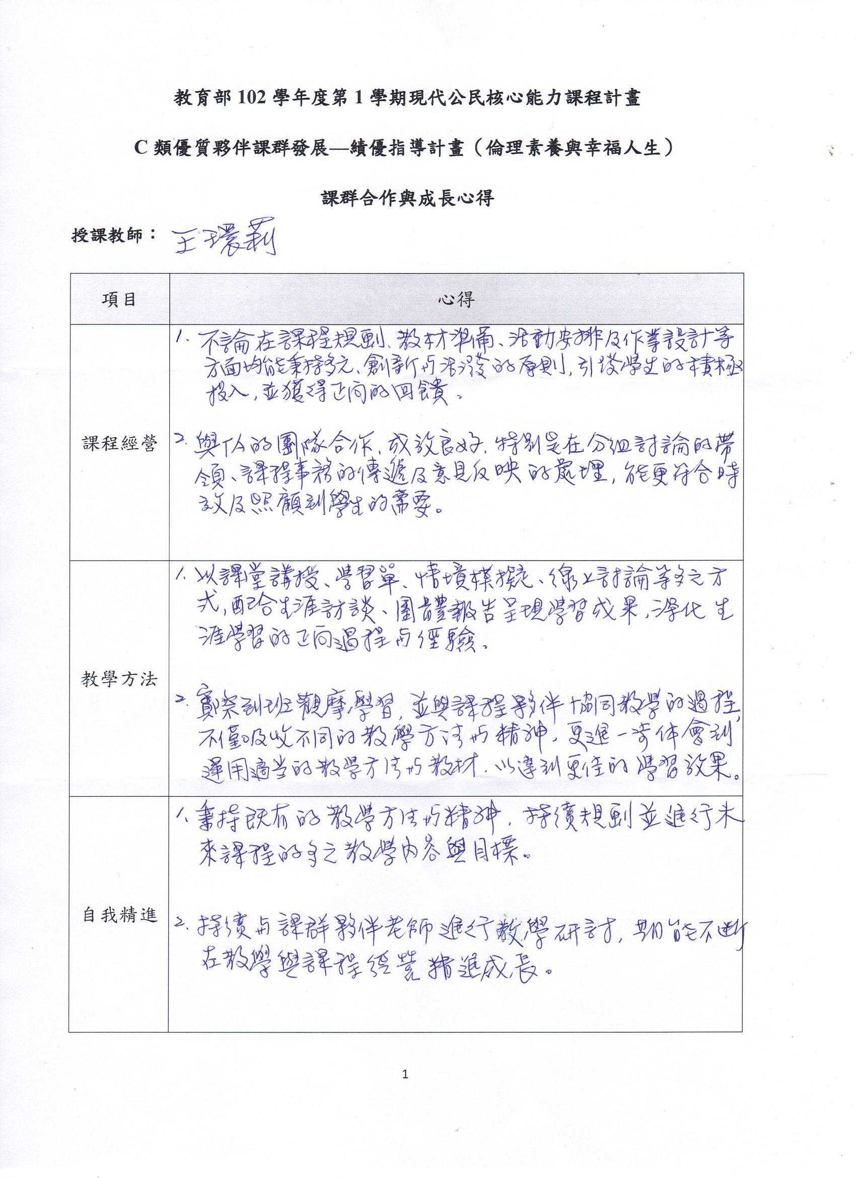 王環莉老師教學心得