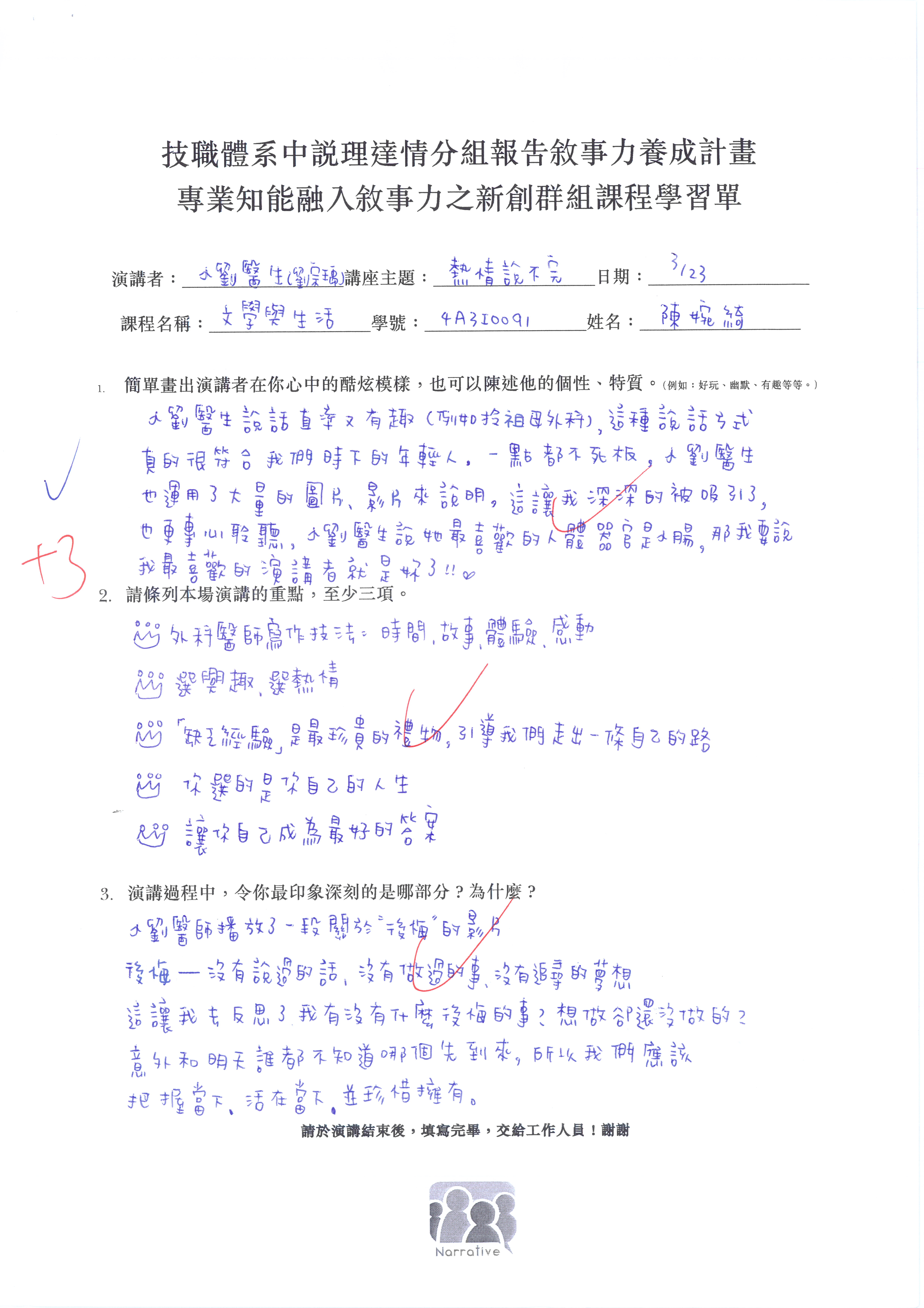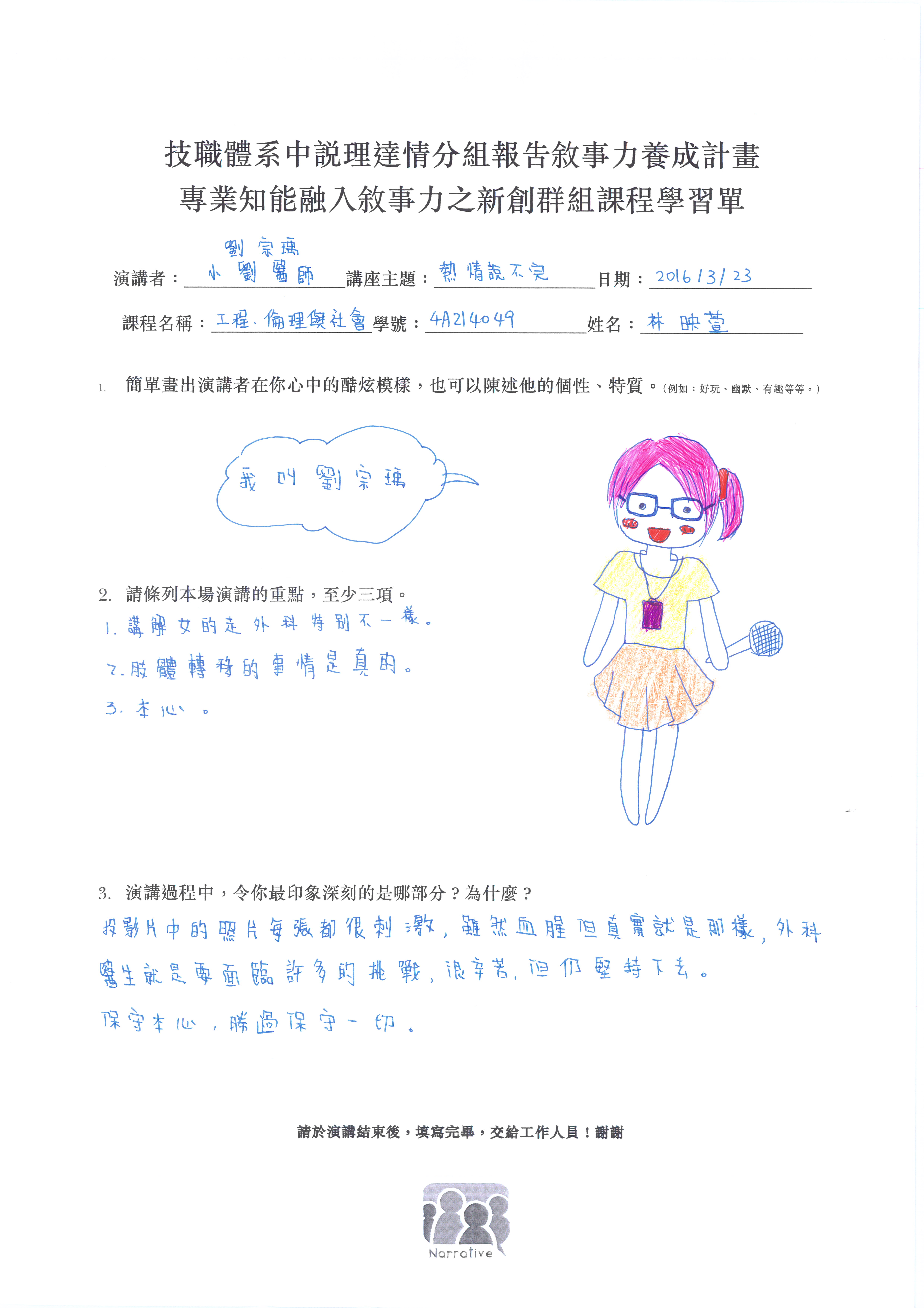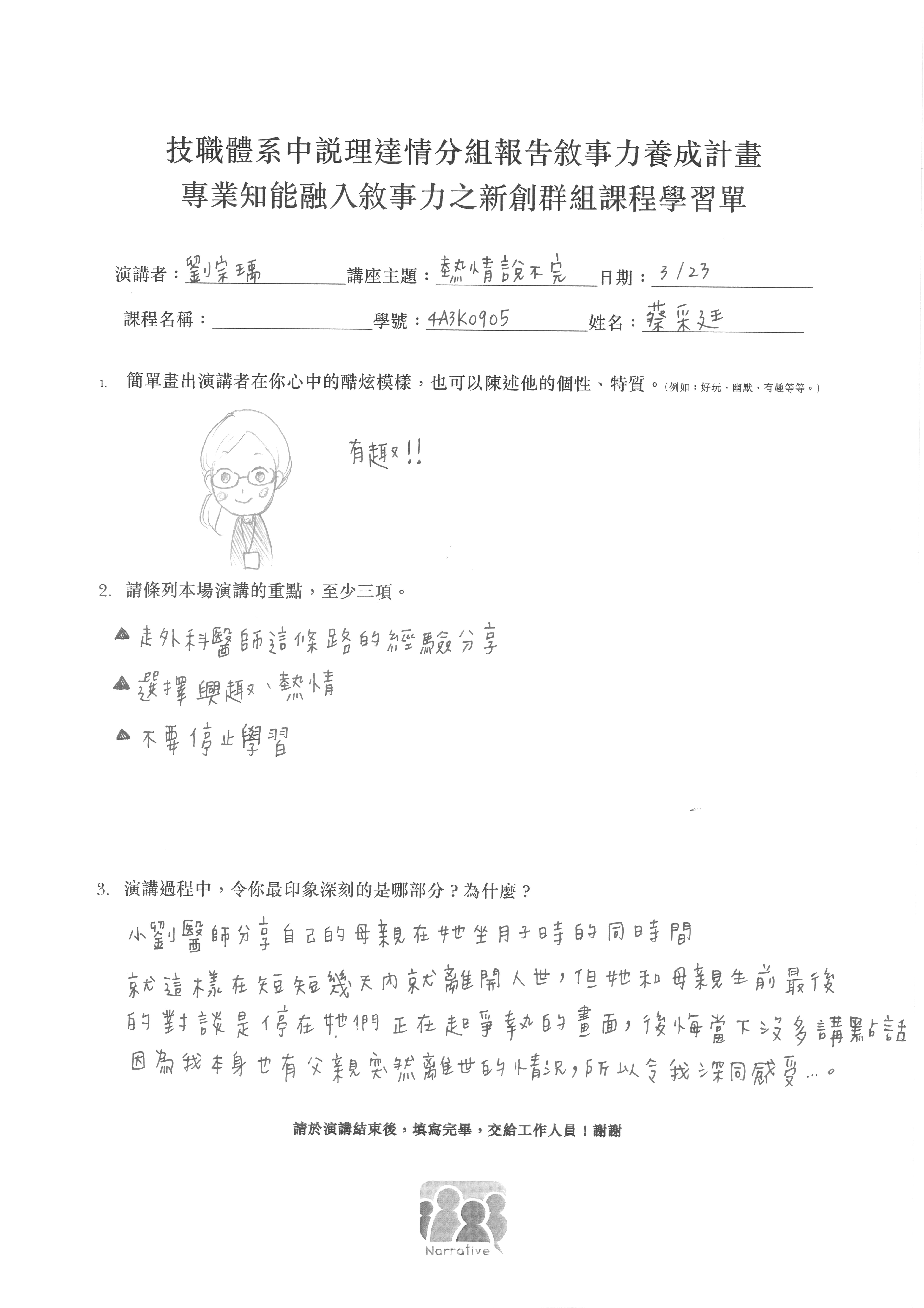 融入敘事力之創新群組課程計畫