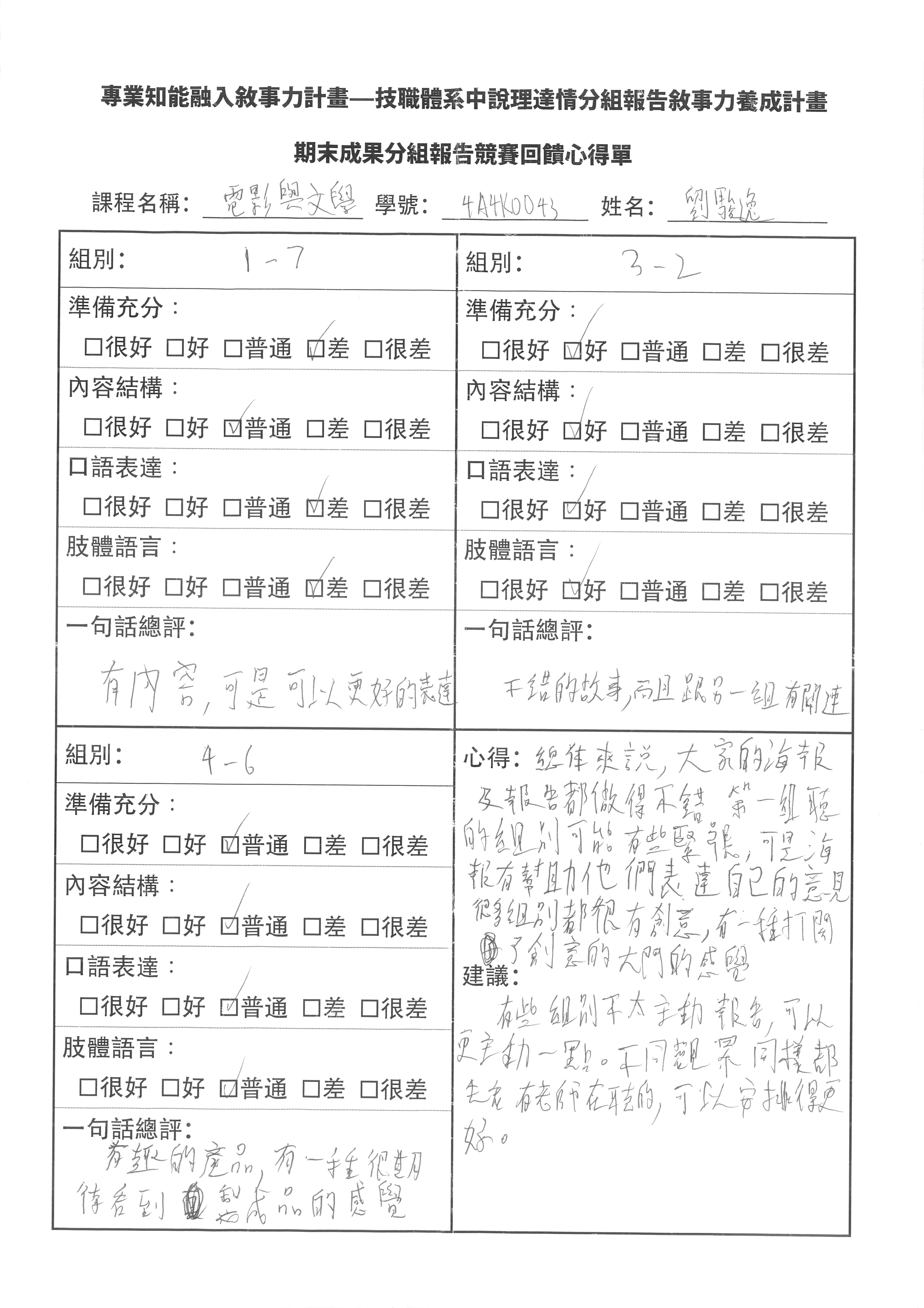 104 - 專業知能融入敘事力之創新群組課程計畫