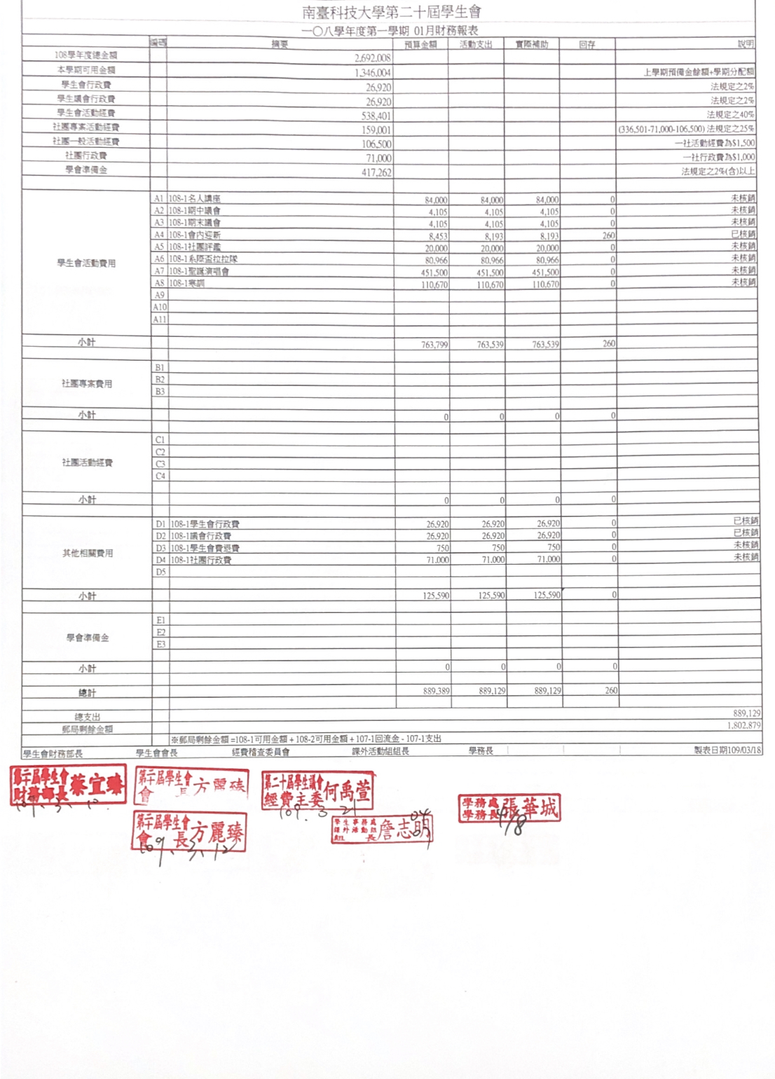 學生會財務報表