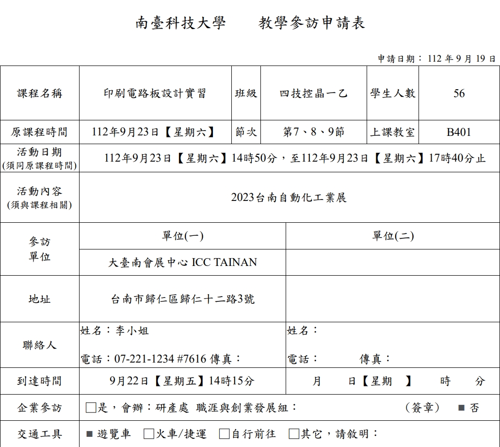 112年9月23日印刷電路板設計實習課程參訪2023台南自動化工業展