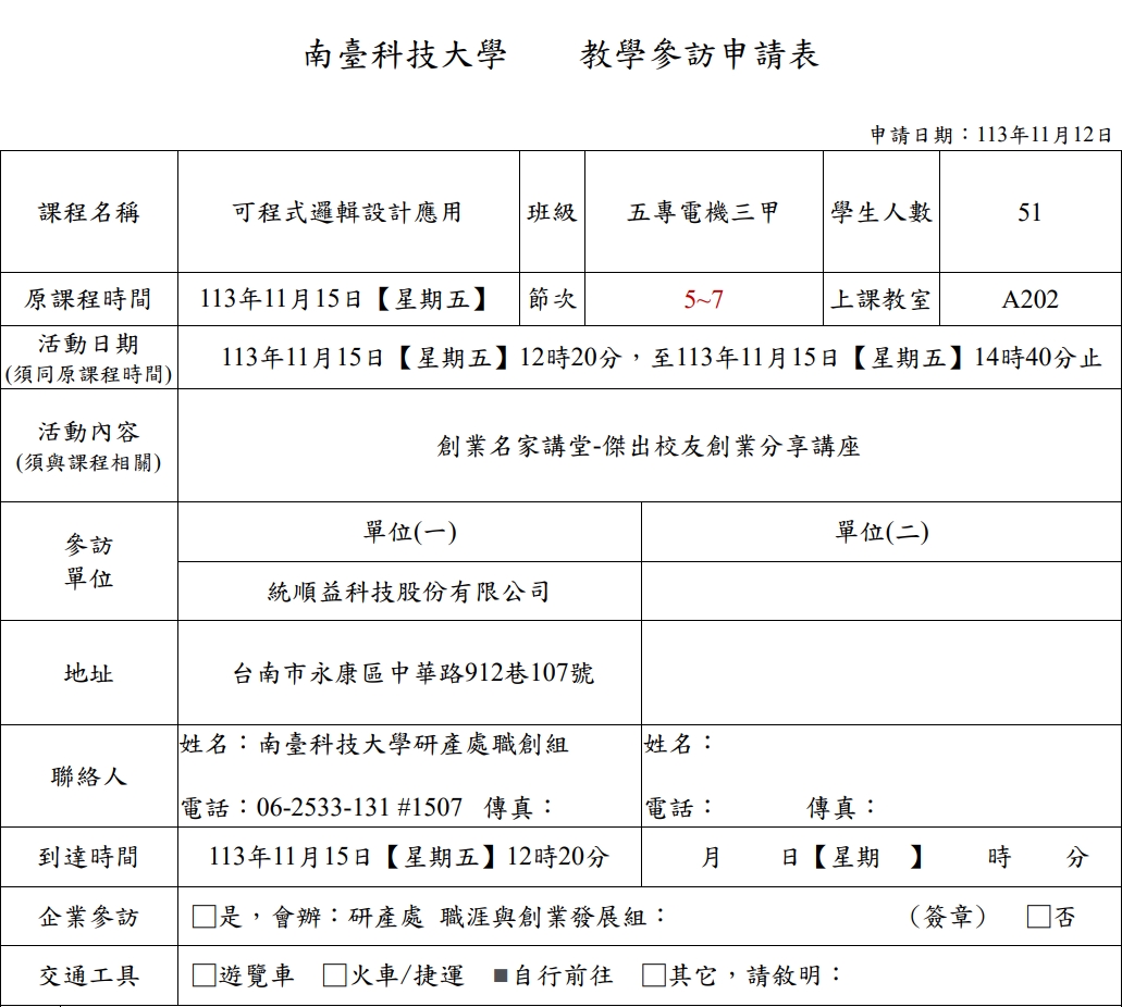 113年11月15日可程式邏輯設計應用課程參訪創業名家講堂-傑出校友創業分享講座