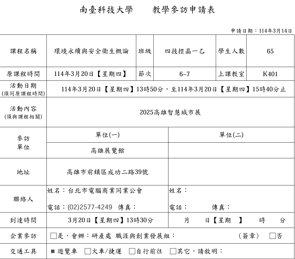 114年3月20日環境永續與安全衛生概論課程參訪2025高雄智慧城市展