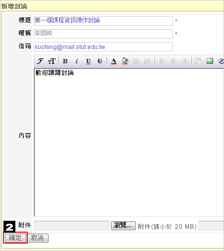 3&4. 輸入討論標題及內容,最後點選