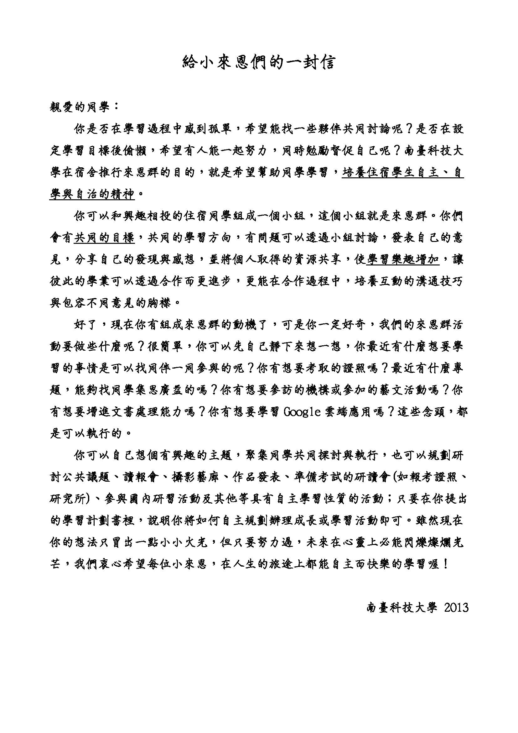 宿舍「三自書院」招募小來恩群喔!!