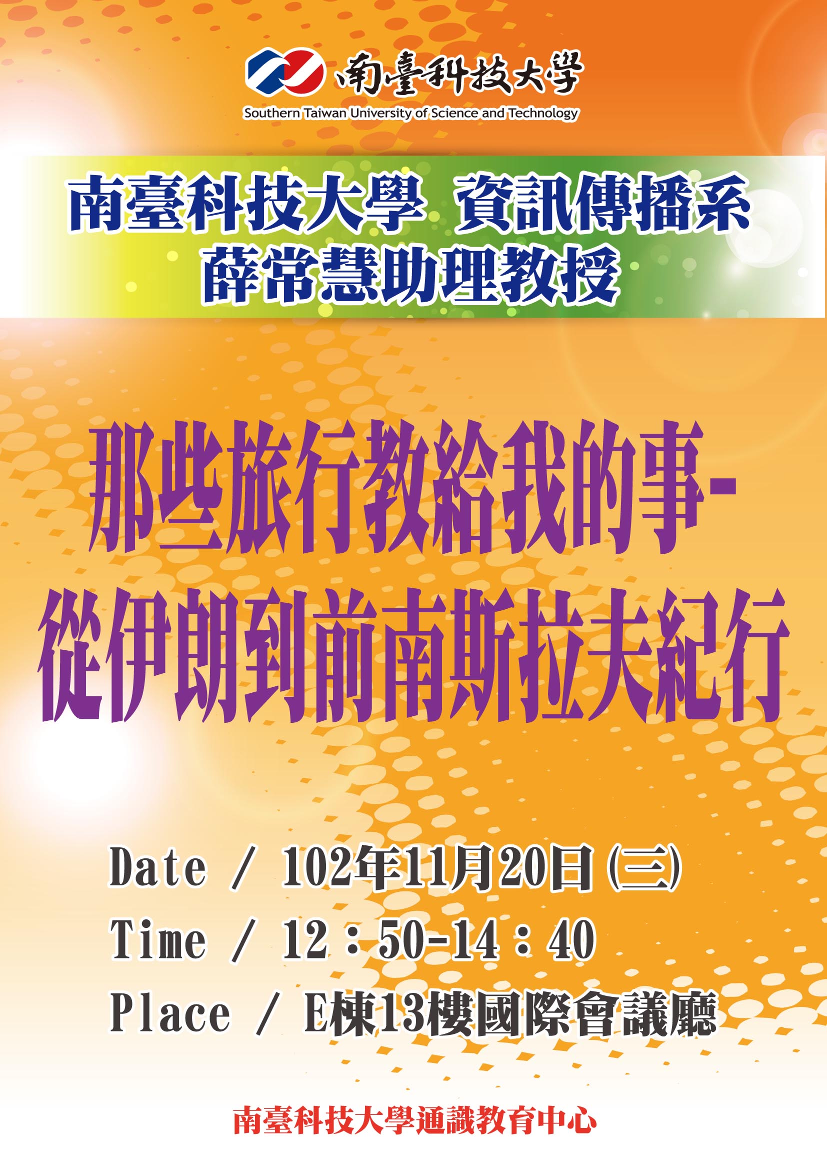 102/11/20 本校資訊傳播系薛常慧助理教授-那些旅行教給我的事--從伊朗到前南斯拉夫紀行