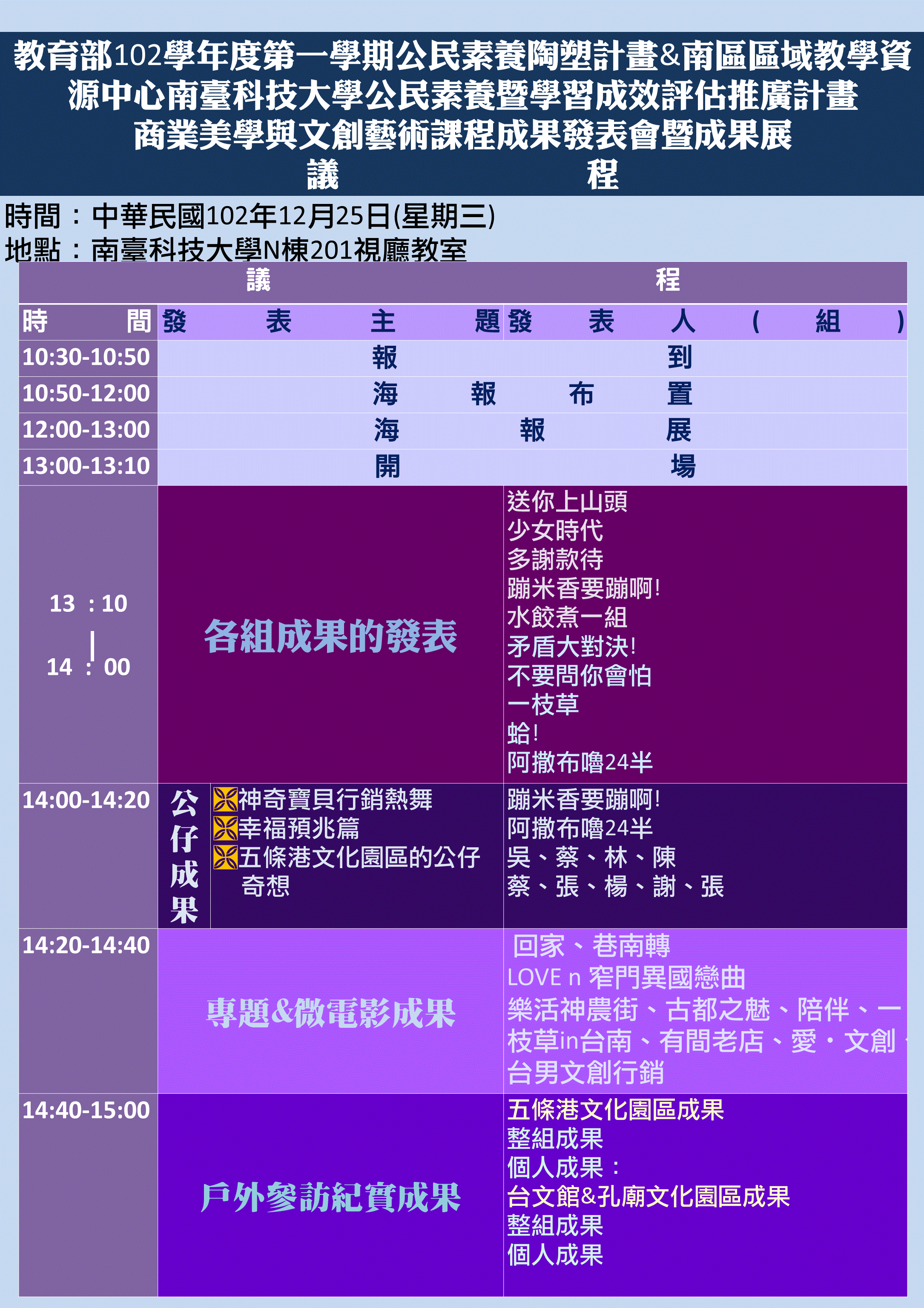 時間:102/12/25(三) 10:30-15:00