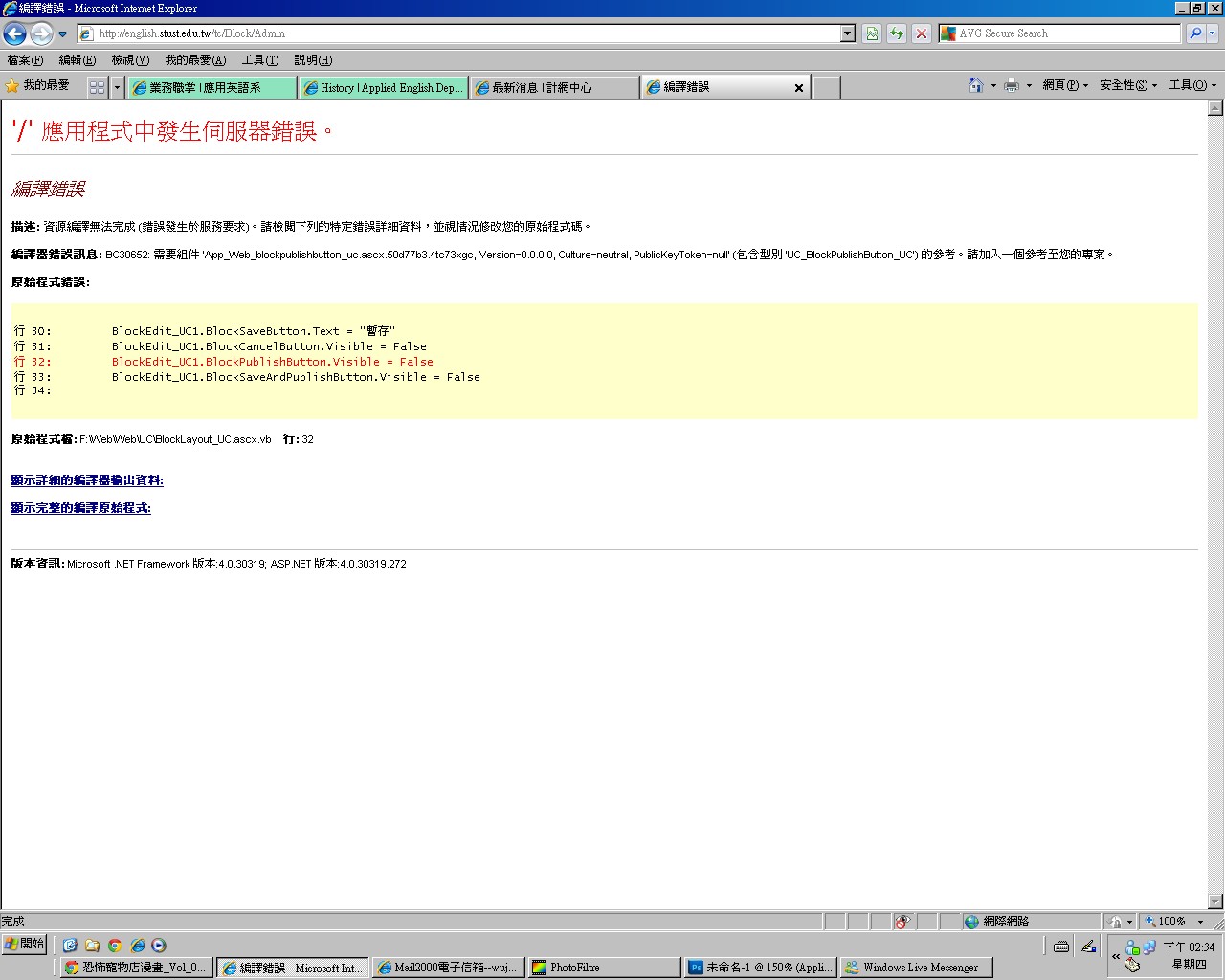有時在點選區塊編輯時,都會出現'/' 應用程式中發生伺服器錯誤。