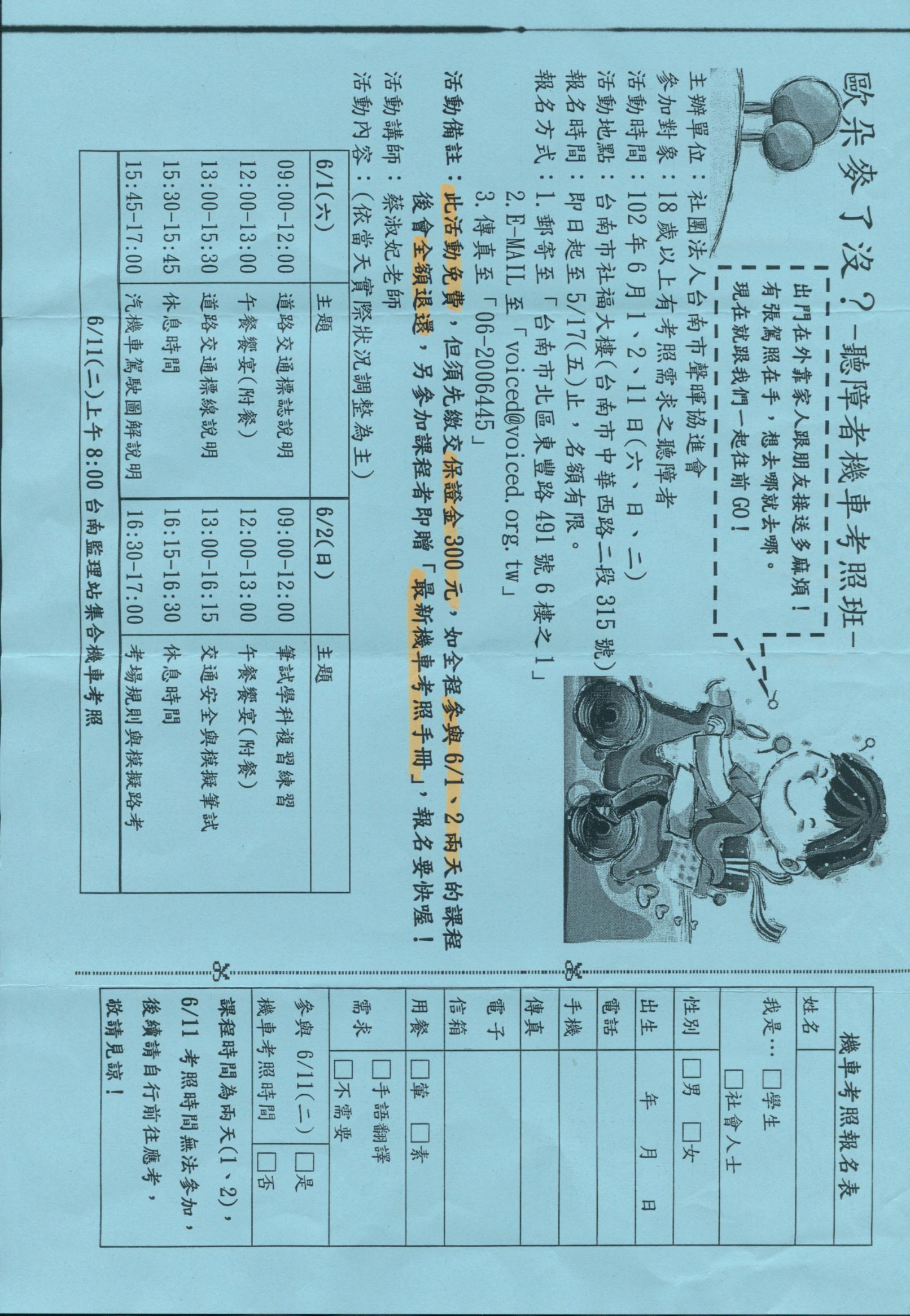 報名方式:1.郵寄至「台南市北區東豐路491號6樓之1」