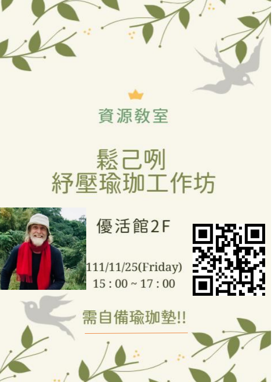 地點:本校 優活館 2F(需自備瑜珈墊)