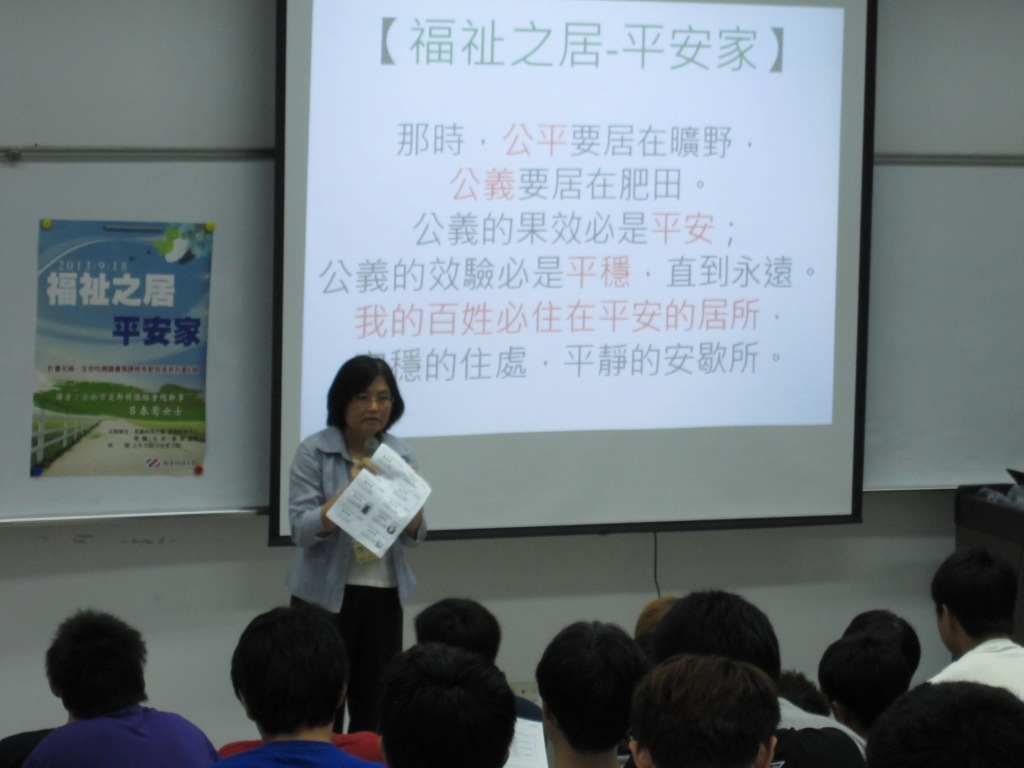 2013.09.18 呂春鶯女士說明日本對於服務學習的做法,並介紹影片─福祉之居。 |