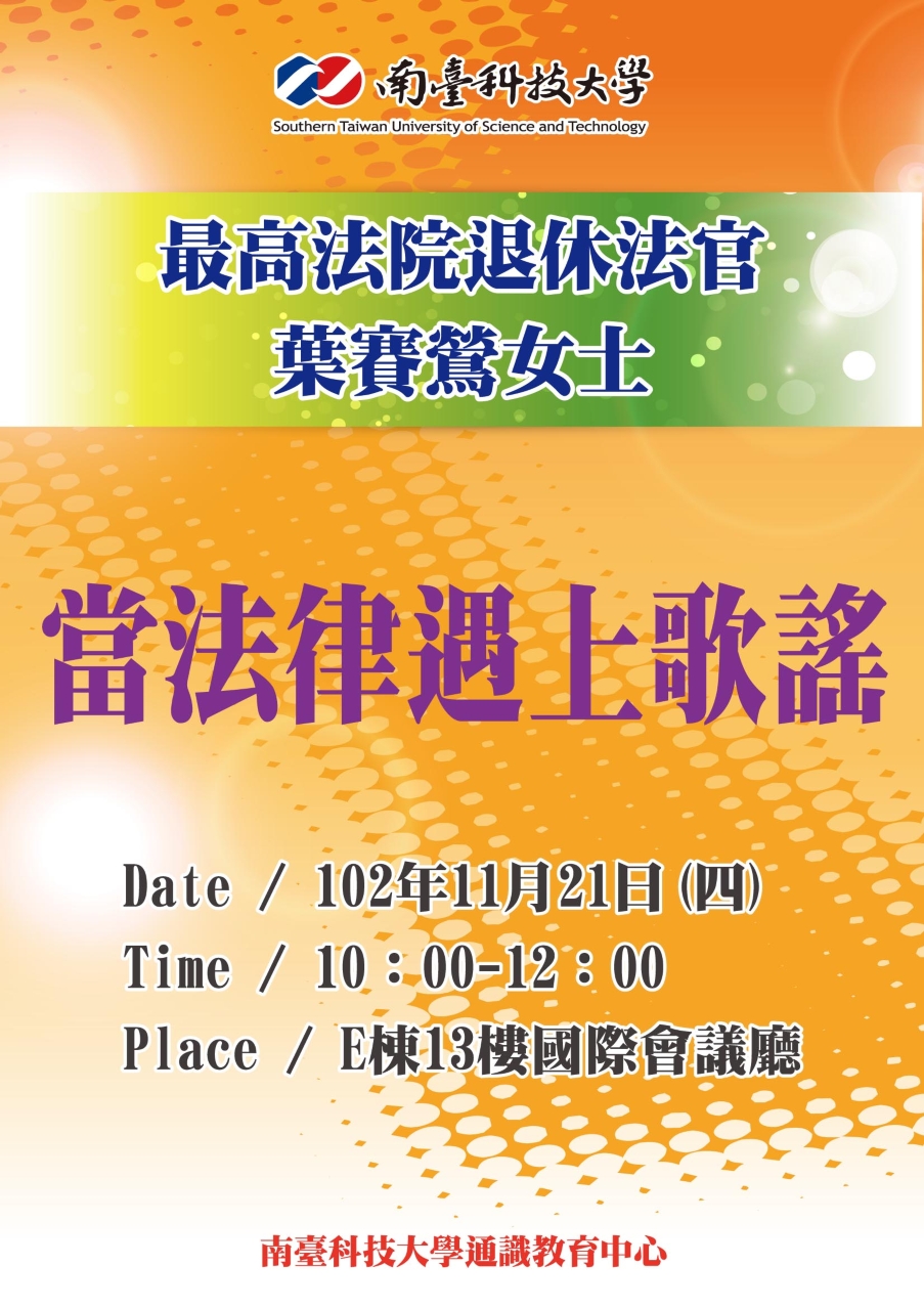 102/11/21(四)南臺通識教育中心辦理校園活動-通識教育大師講座