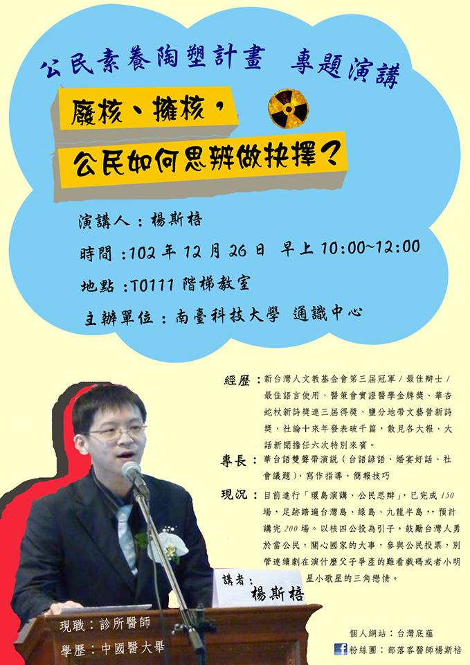 公民素養陶塑計畫專題演講-「廢核、擁核,公民如何思辨做決擇」
