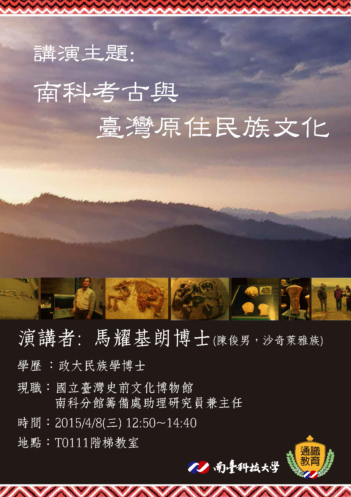 報名網址:中心演講:南科考古與台灣原住民文化