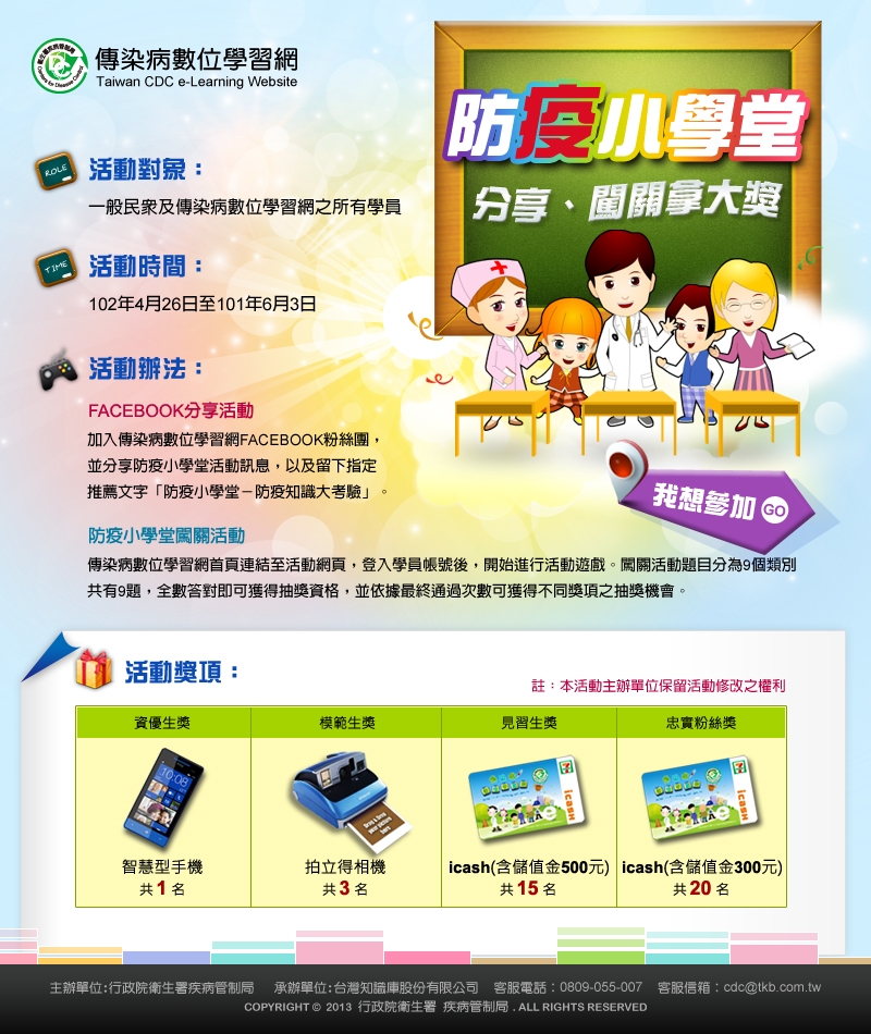 防疫小學堂-防疫知識考驗抽大獎!!http://e-learning.cdc.gov.tw/