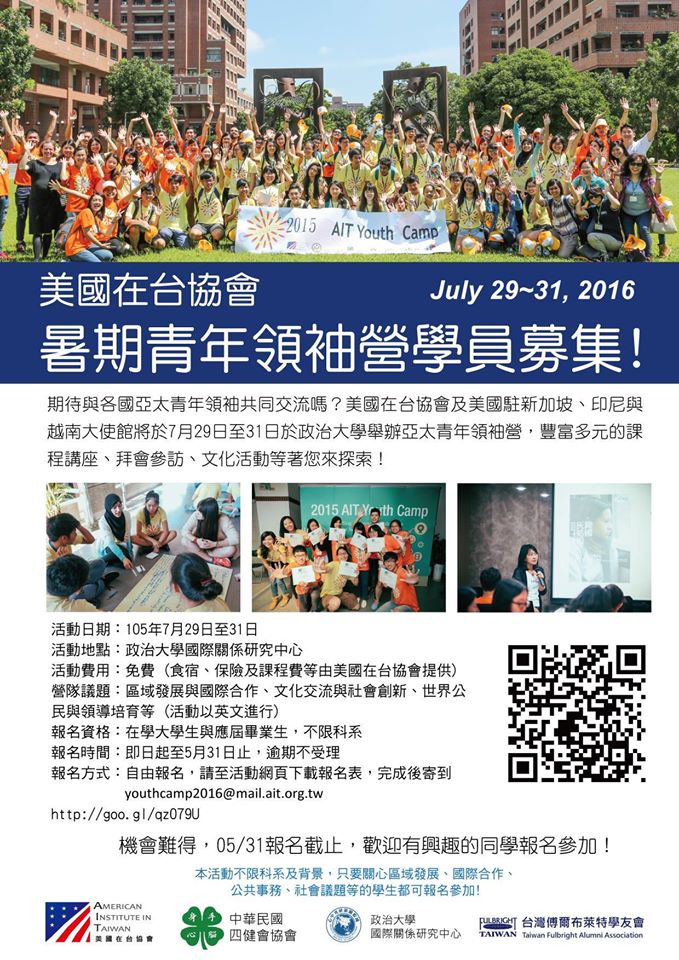 報名方式:自由報名,請下載報名表,完成後寄至 youthcamp2016@mail.ait.org.tw
