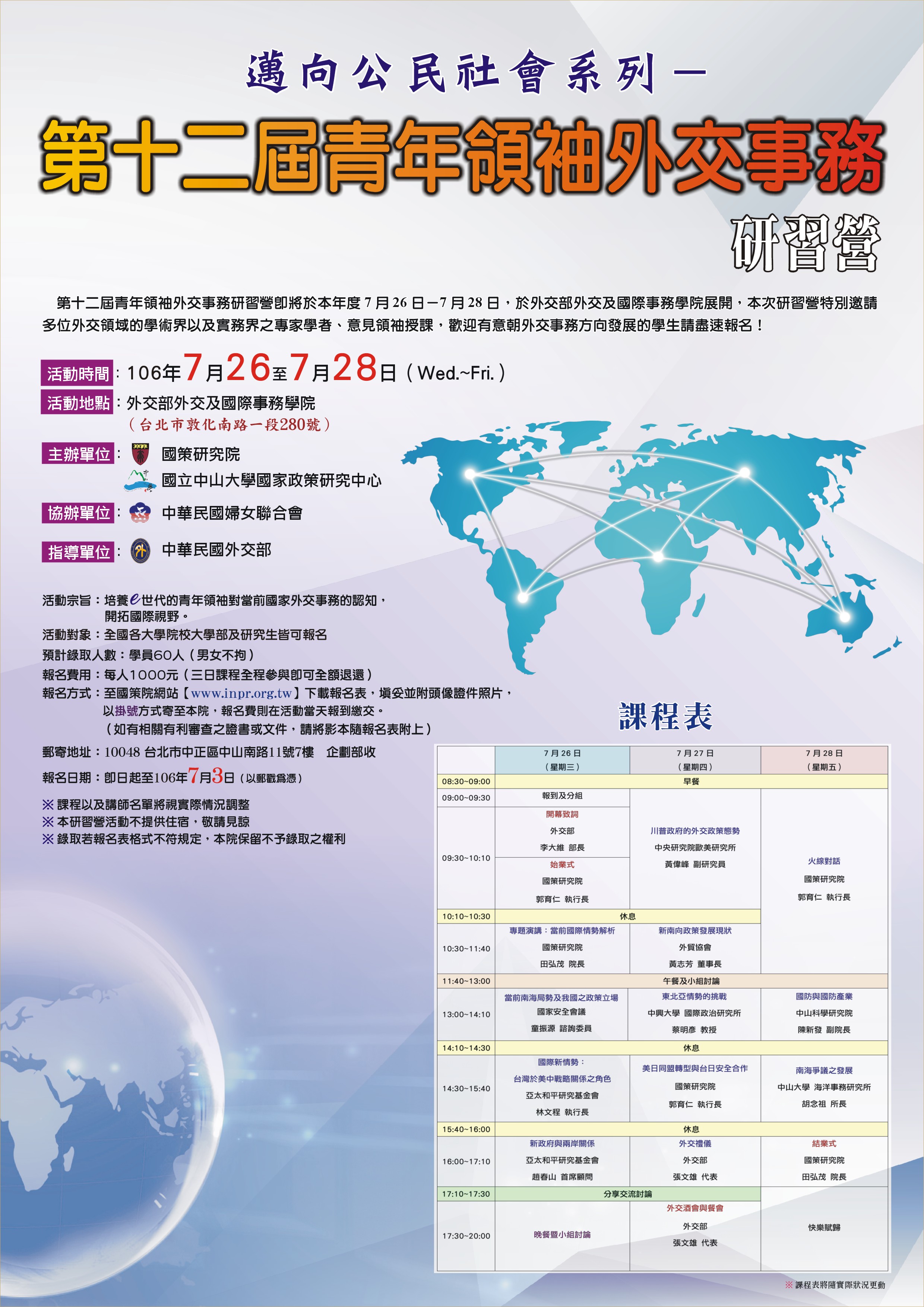 舉辦「第十二屆青年領袖外交事務研習營」。