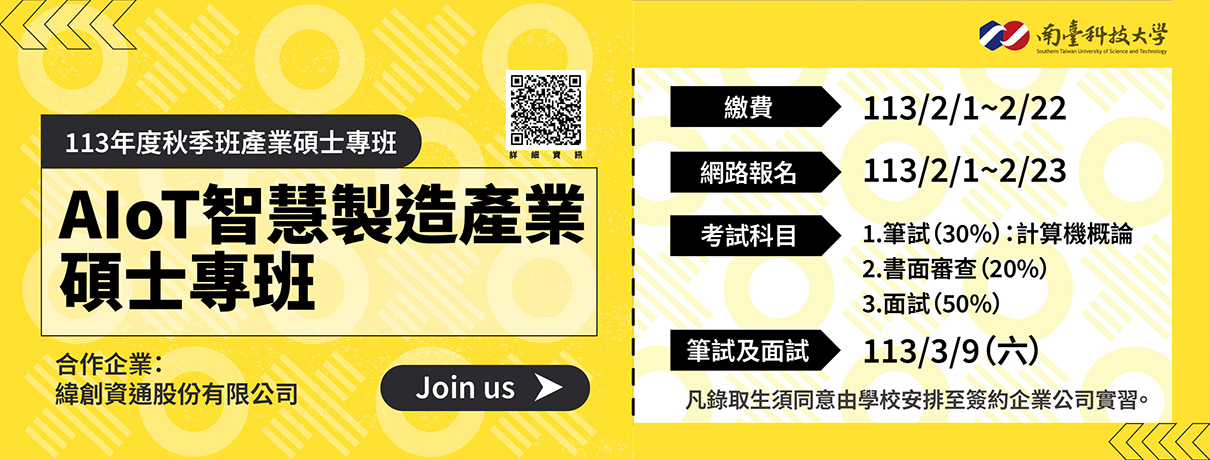 招生資訊-113年度秋季班產業碩士專班─AIoT智慧製造產業碩士專班