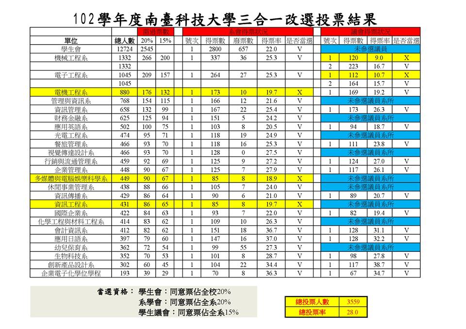 附圖為本次三合一改選的投票結果公告!
