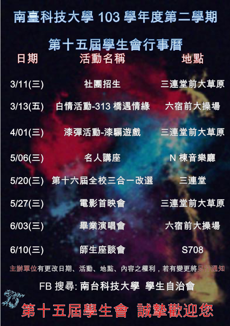 打工或是玩樂之餘也不能錯過下學期的精彩活動!!