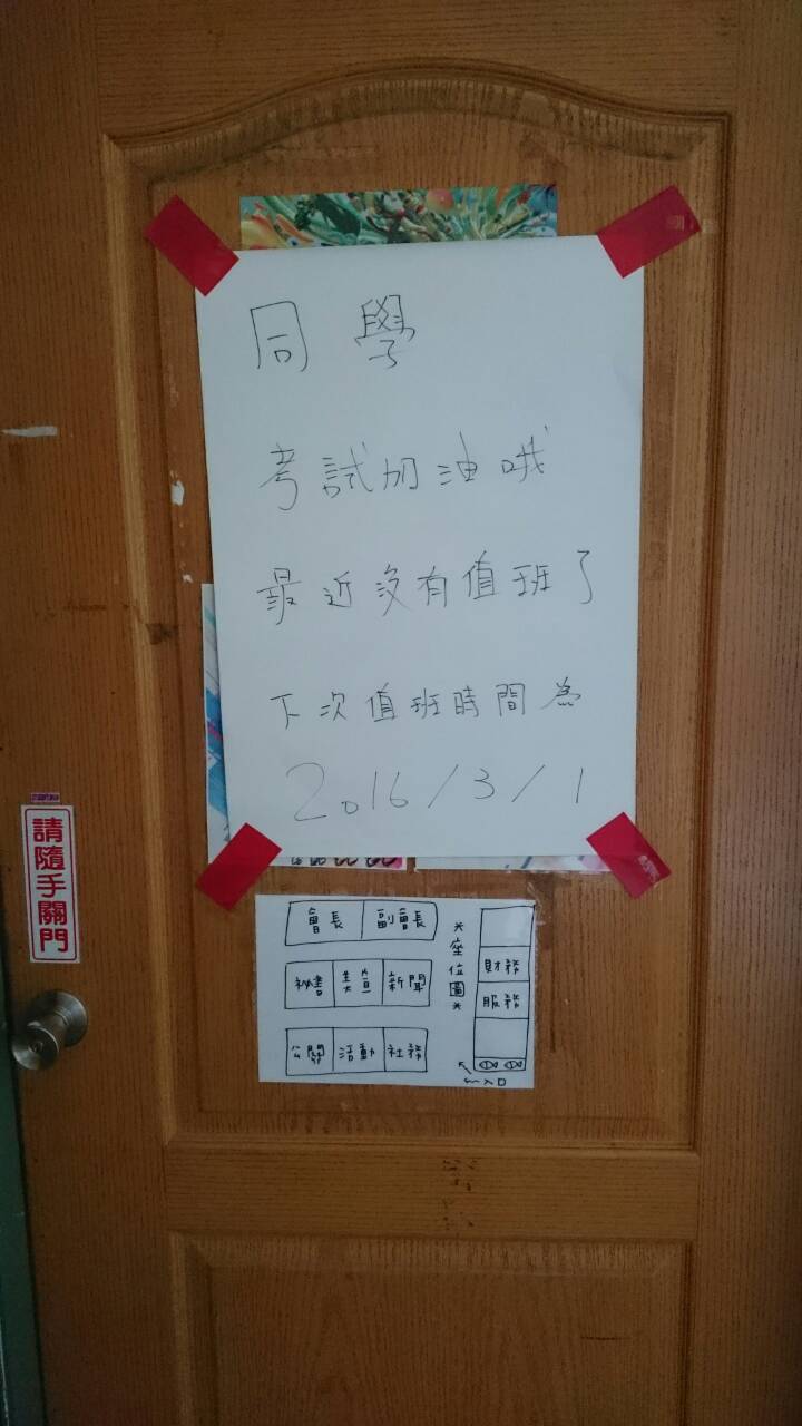在這邊提醒一下哦~我們下學期值班的時間是3/1,有需要借場地或是器材的同學,我們3/1見